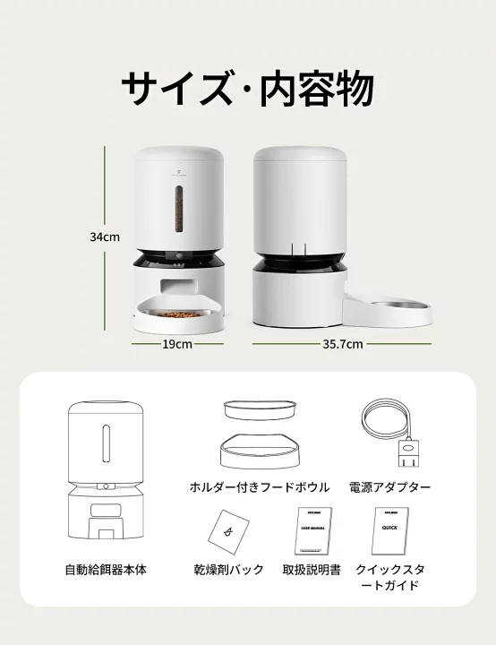 | 給餌量調整 | 1ポーション約5g単位で細かく設定可能 |